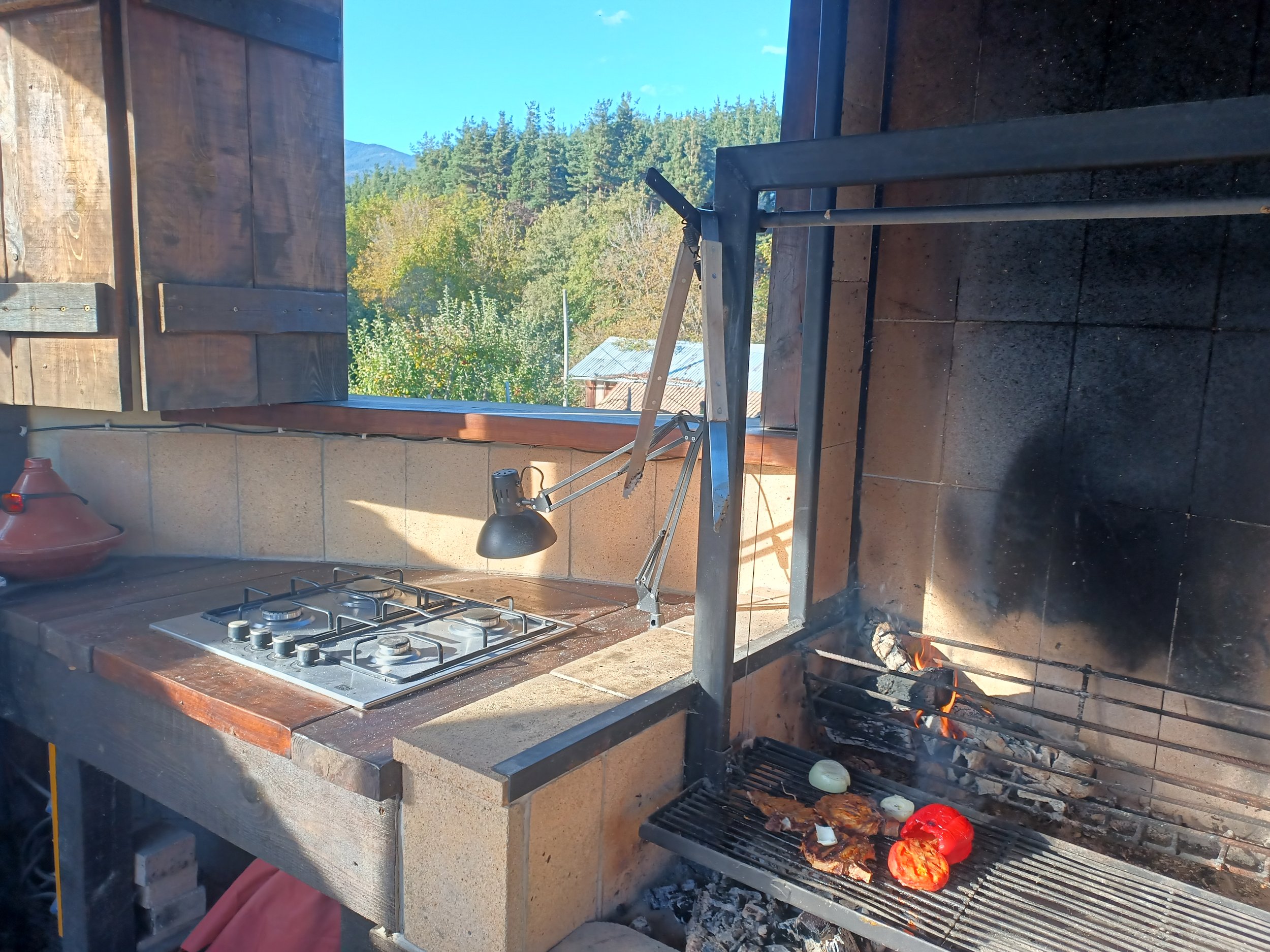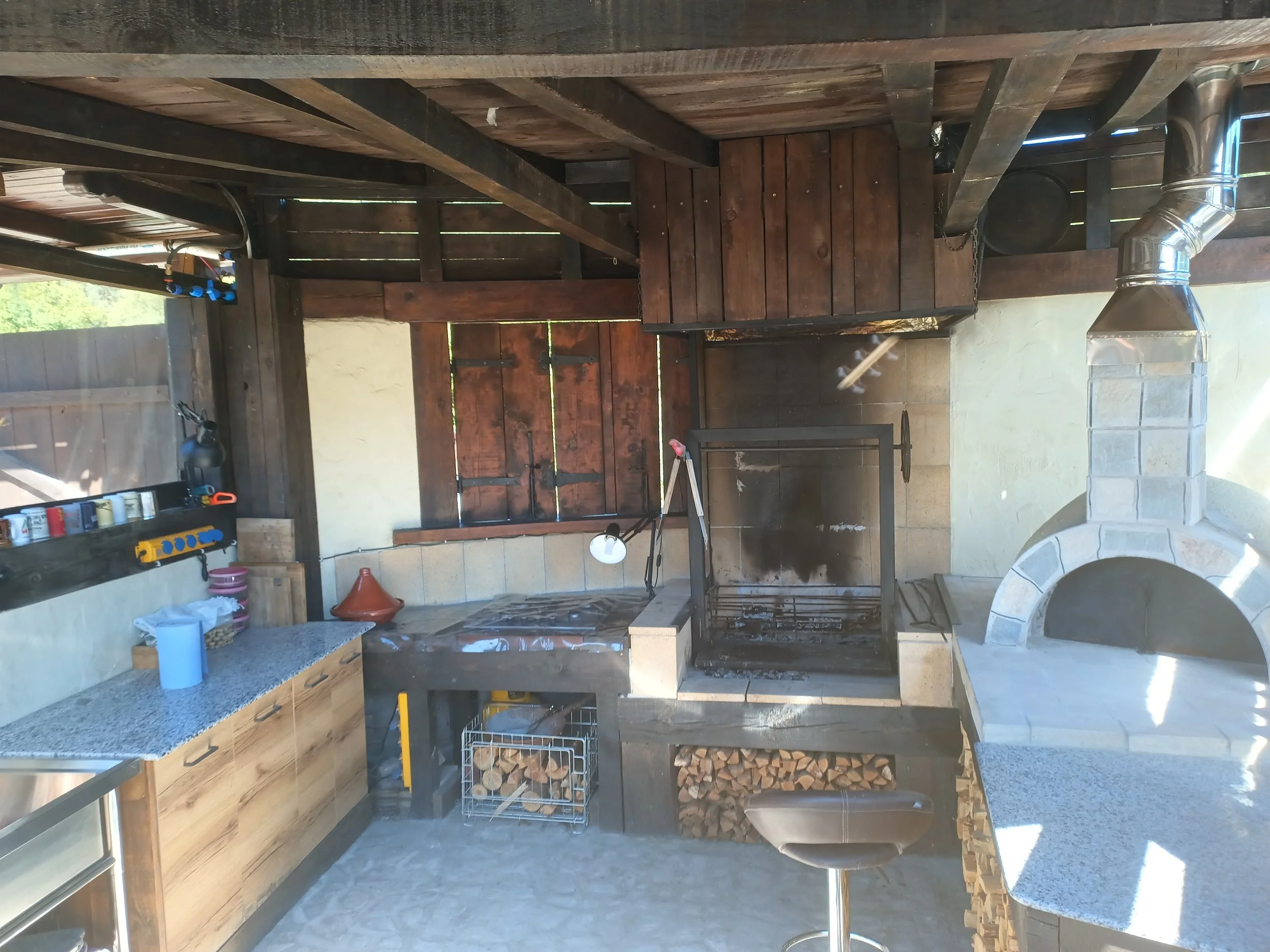 “ A major makeover has also been acheived in the rear garden , several seating areas allow all day sunbathing or alternatively provide shade from the summer sun with one giving a river view. Adjoining the house is a covered bar area with seating. Which brings us to the impressive summer kitchen featuring a wood fired pizza oven , Argentinian style BBQ grill with views to the mountain, gas hob sink with hot and cold running water enables year round outside catering . A firepit area is a great place to end the evening after enjoying an alfresco meal